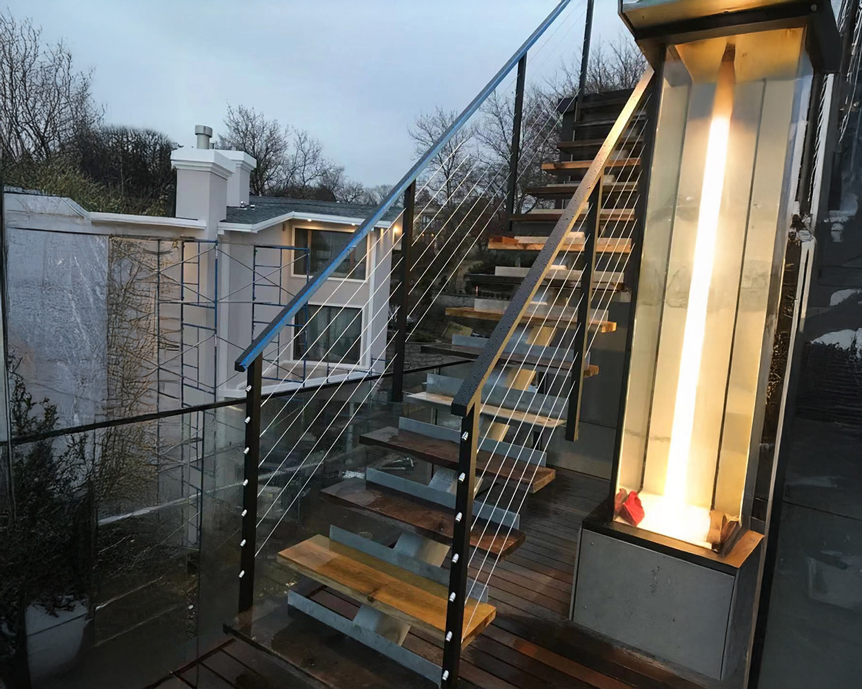 Modern Outdoor Staircase with Stainless Steel Cable Railing