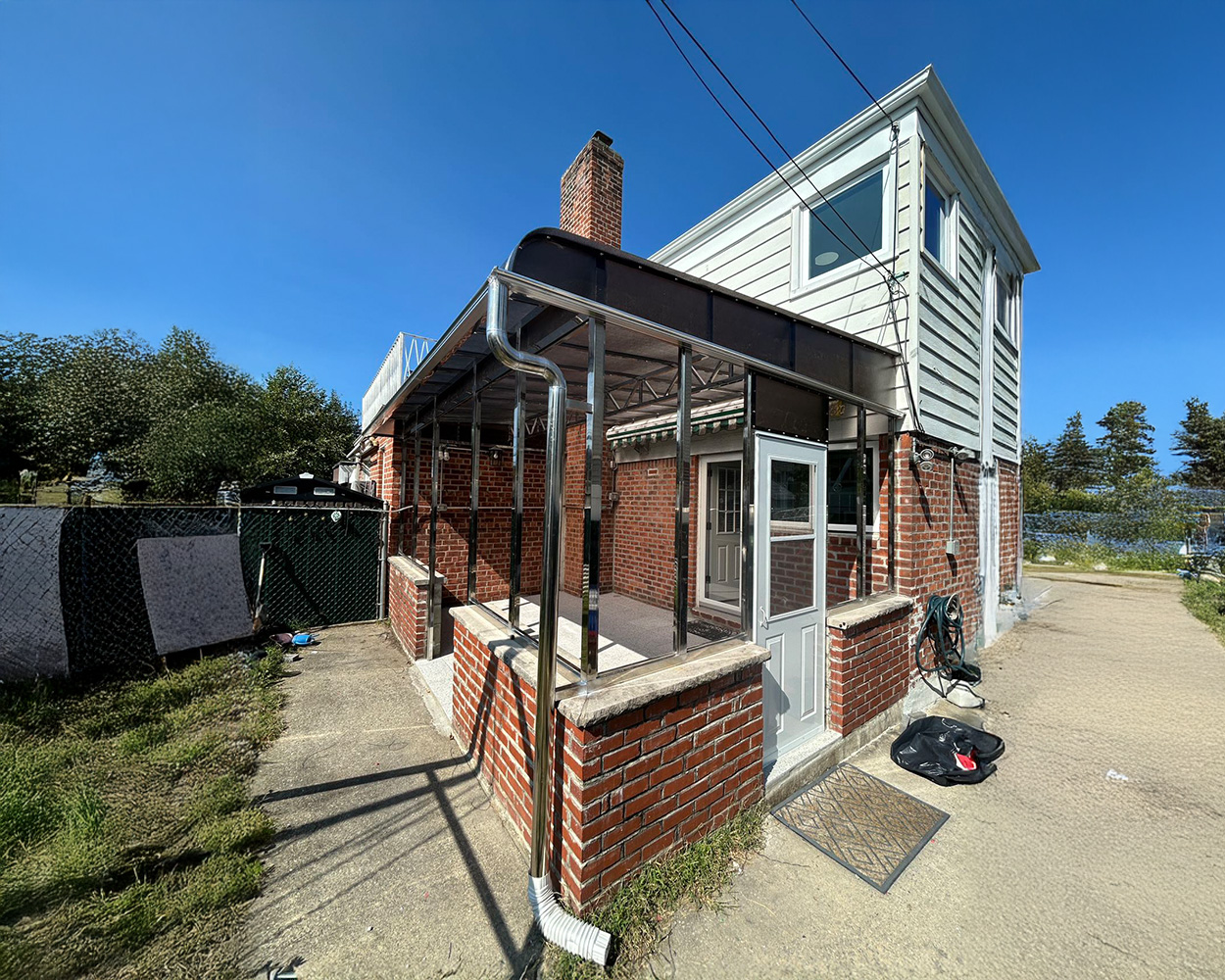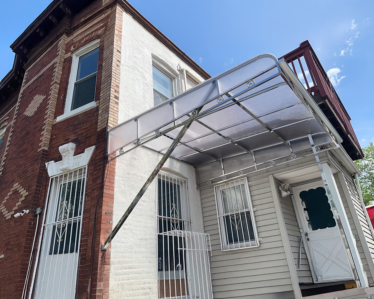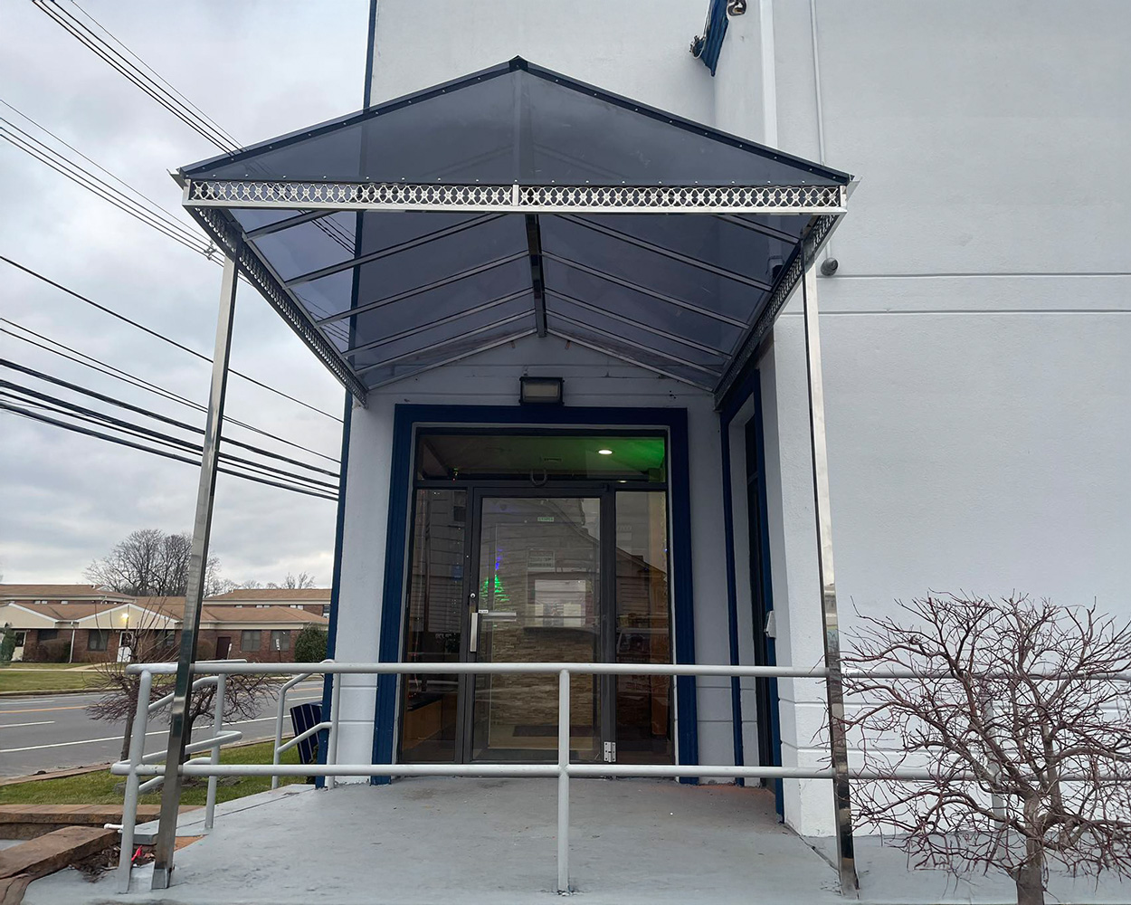 This architectural canopy system is designed to protect entryways, walkways, balconies, and patio stairs from rain, snow, and harsh sun while upgrading the façade with a clean, modern look. The rigid stainless steel structure provides strong corrosion resistance for long-term outdoor use, and the impact-resistant polycarbonate roof panel diffuses light without blocking visibility.