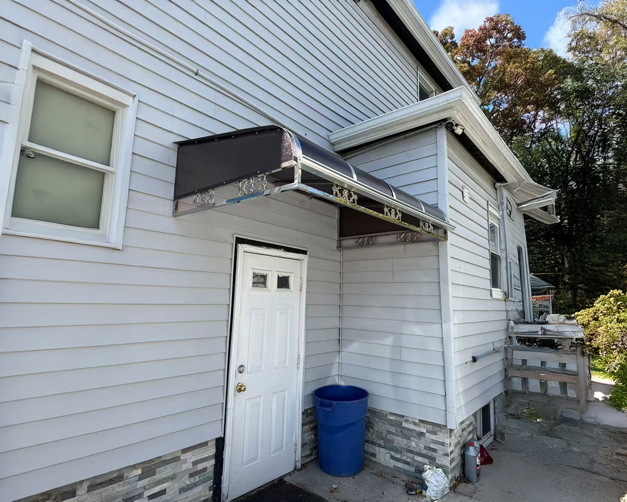 This awning style works especially well on brick, stucco, siding, and concrete facades for residential and light commercial use—front doors, patio doors, service entrances, storefront doors, and wide window spans. A reinforced structure and secure mounting hardware help improve stability in windy conditions. The smooth canopy surface is easy to rinse clean, and the neutral, modern profile complements both classic and contemporary buildings.