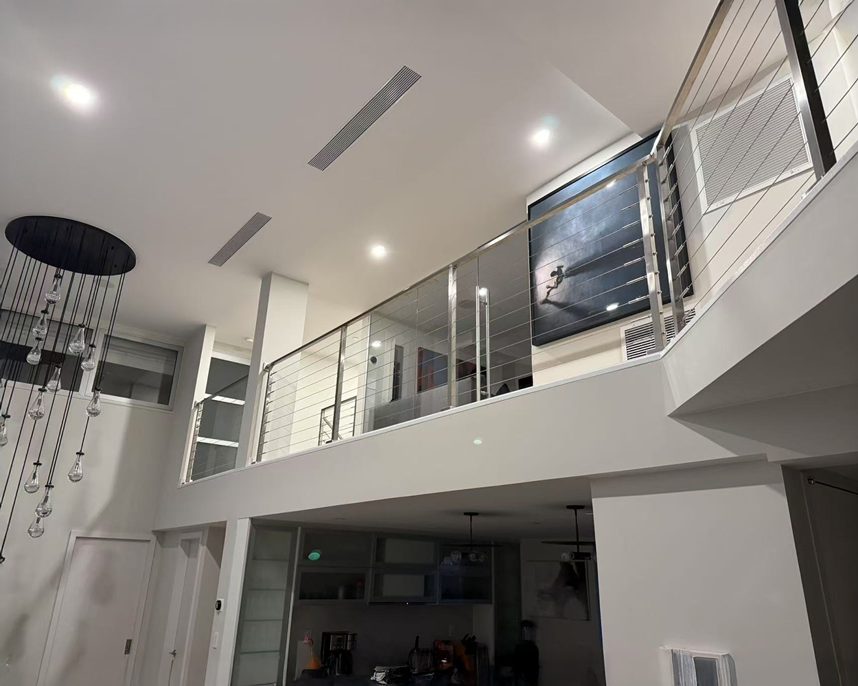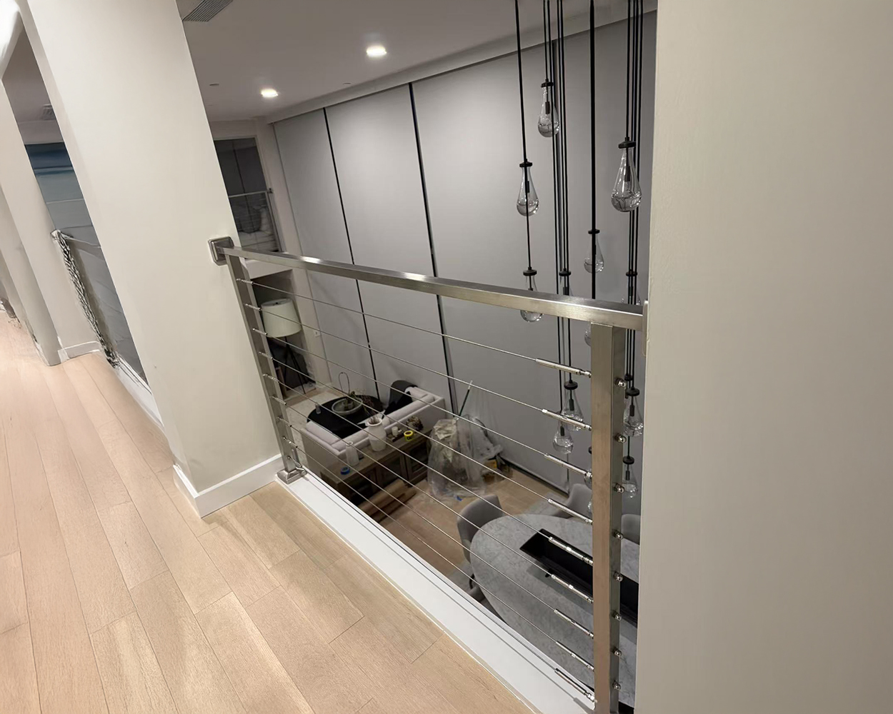 The cable-infill design provides strong fall protection while maintaining a refined architectural look. This system is well-suited for staircases, upper-floor guardrails, hallway edges, and open-plan living spaces where both safety and design clarity are essential. Professional installation is recommended to ensure proper cable tension and long-term structural stability.