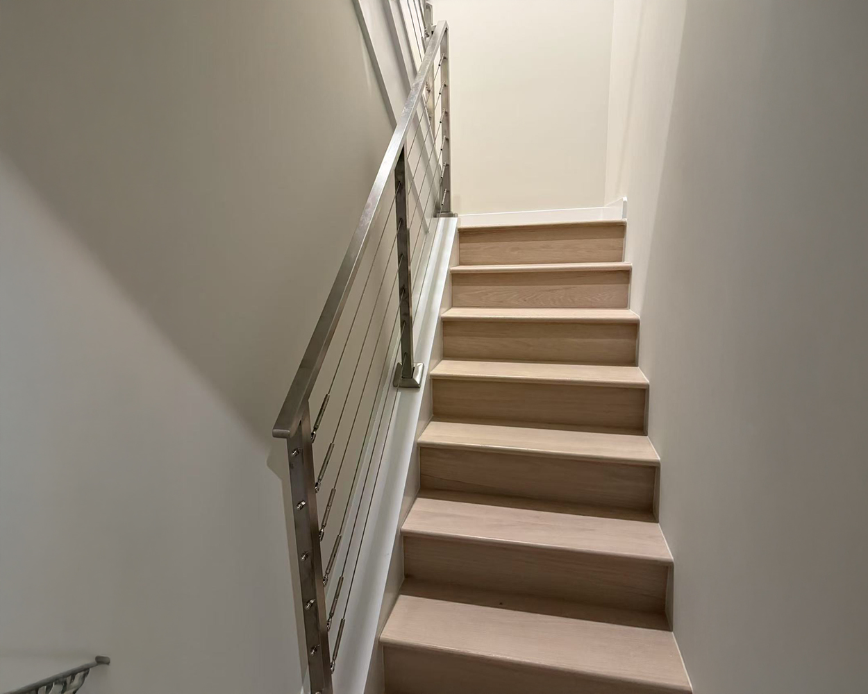 Engineered for durability, the system uses corrosion-resistant stainless steel components that perform consistently in indoor environments and protected semi-outdoor areas. The minimalist profile complements contemporary interiors, modern homes, duplex apartments, and high-end renovations, pairing seamlessly with wood, stone, tile, and concrete stairs.