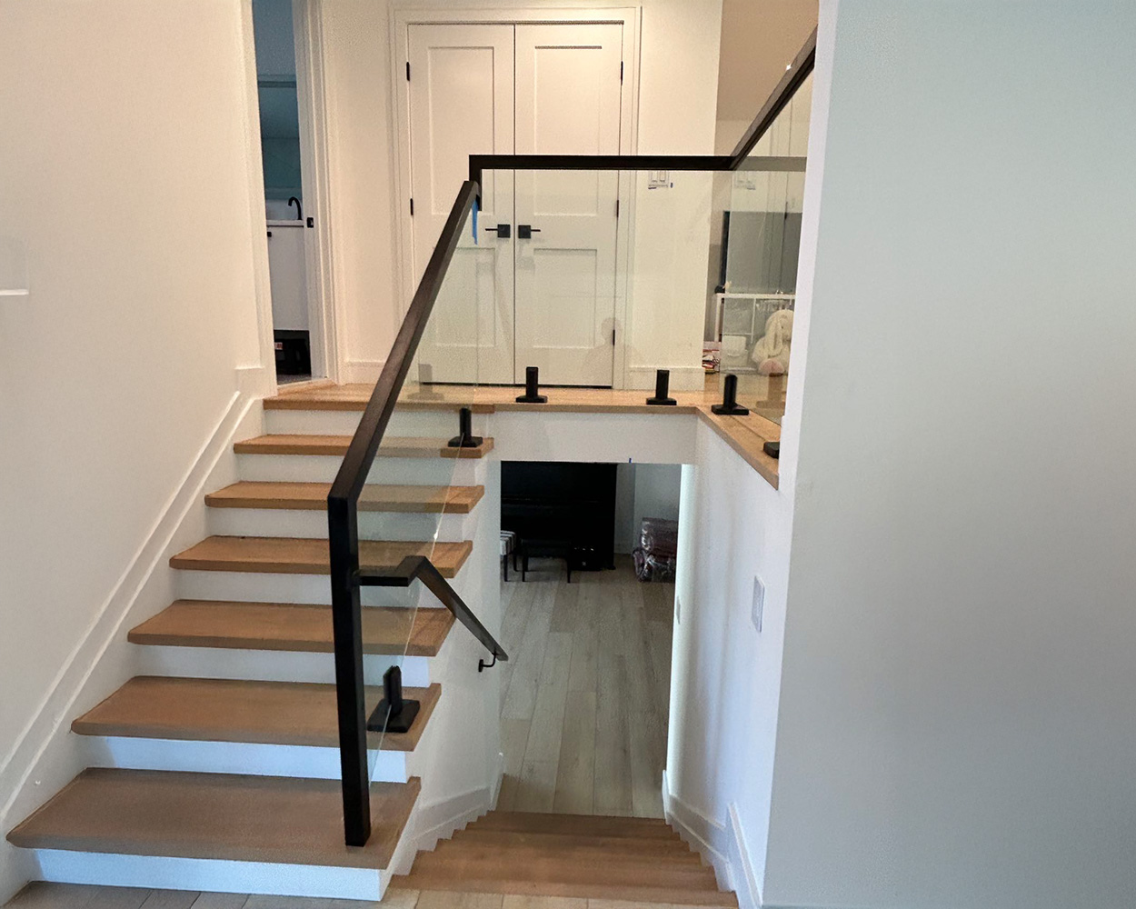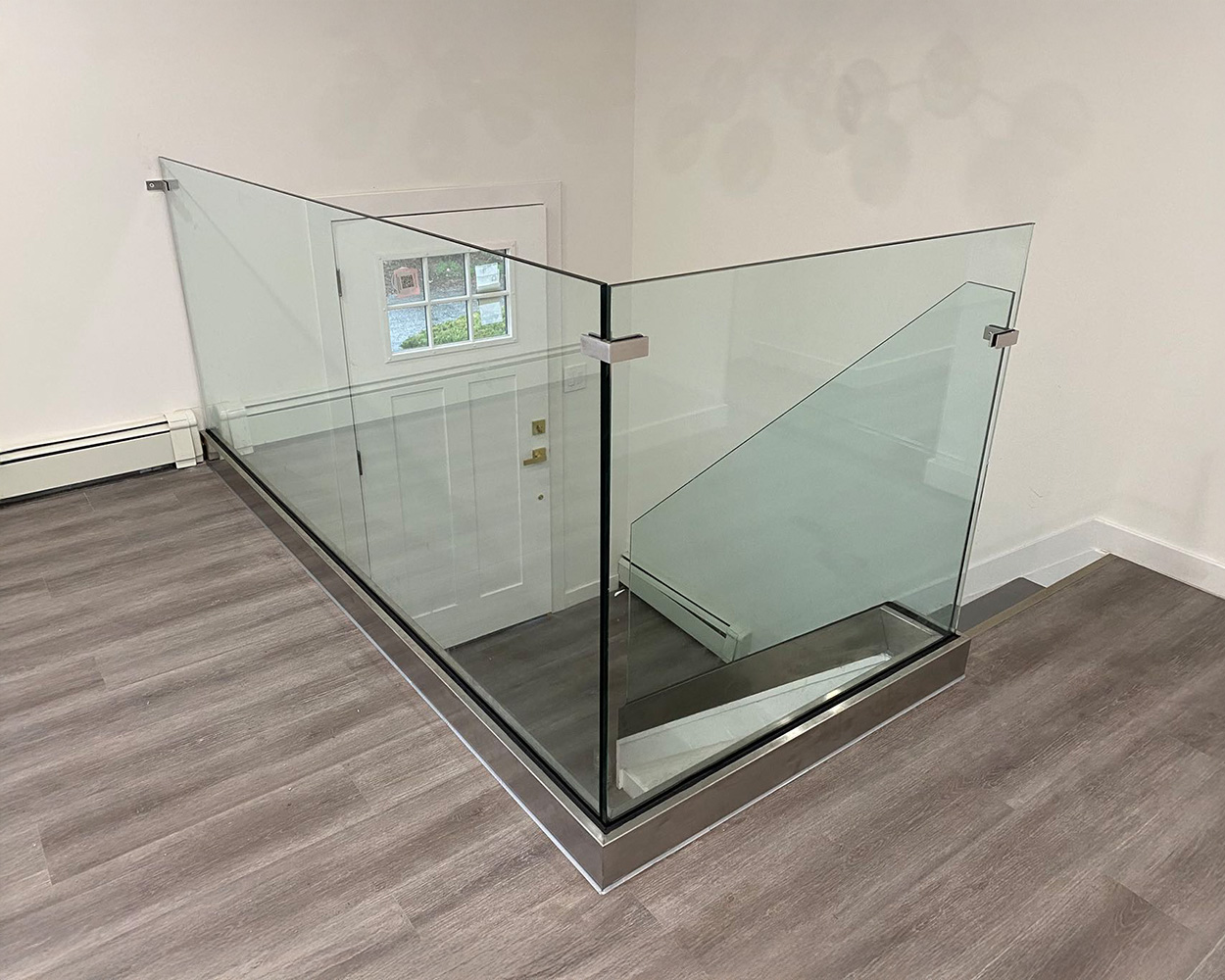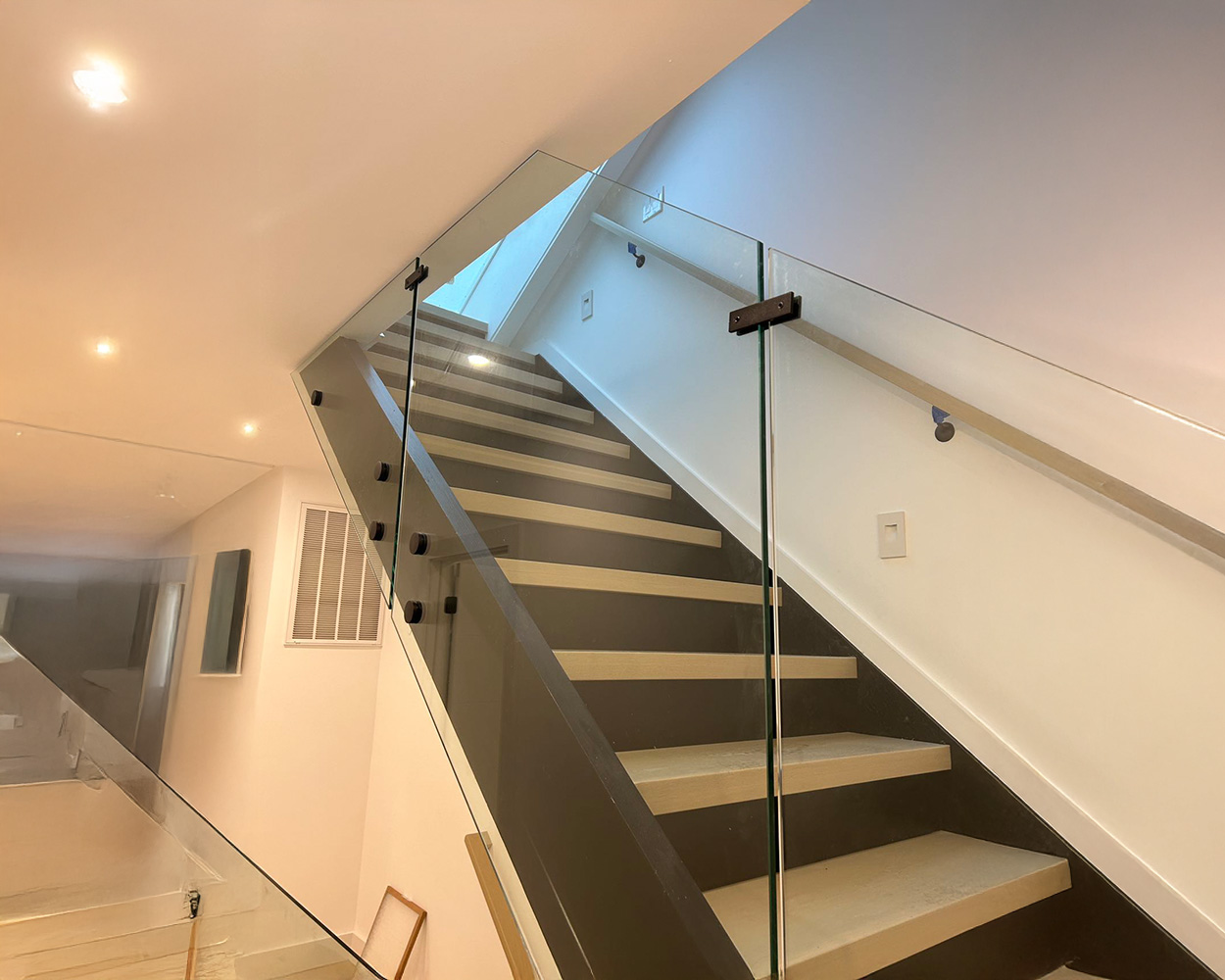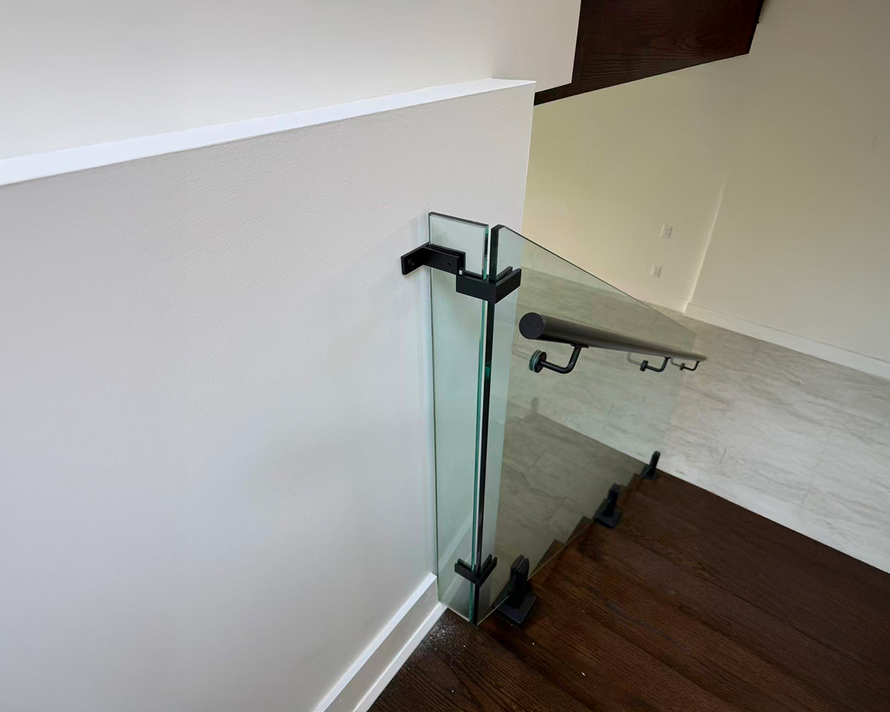 Custom Glass Stair Railing System (Frameless Panels + Stainless Steel Hardware + Optional Powder-Coated Finish)