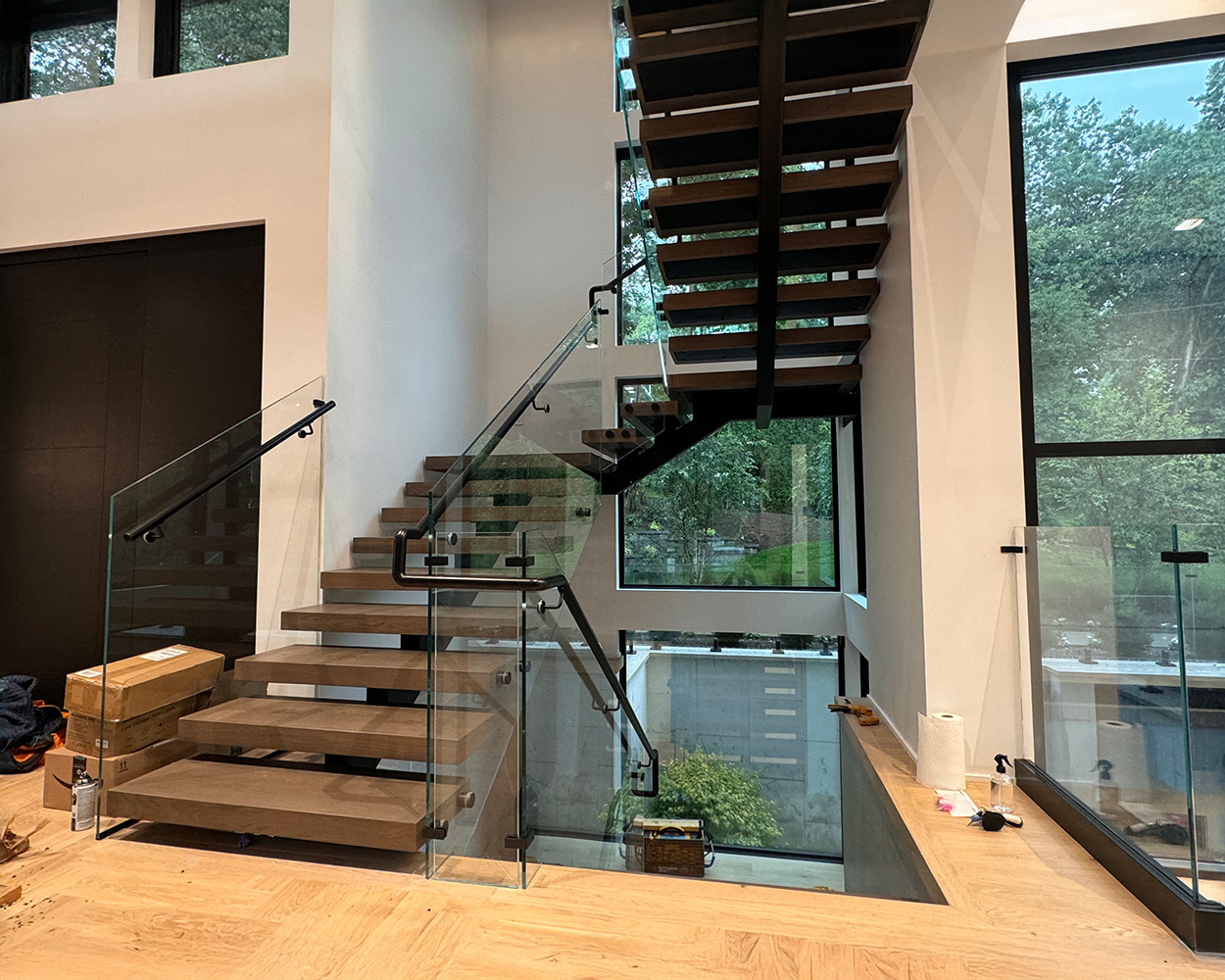 Create a clean, open look without sacrificing safety. This frameless glass railing system uses thick tempered glass panels and heavy-duty hardware to deliver a minimalist “floating” effect that keeps sightlines clear and spaces brighter. It’s ideal for modern homes, duplex staircases, loft corridors, mezzanines, and interior balcony edges where you want a premium finish and reliable fall protection. The system supports straight runs, angled stair sections, and corner transitions, with a smooth, comfortable handrail option for daily use. Designed for long-term stability, corrosion resistance, and easy cleaning, it pairs perfectly with wood treads, concrete, tile, or engineered flooring.