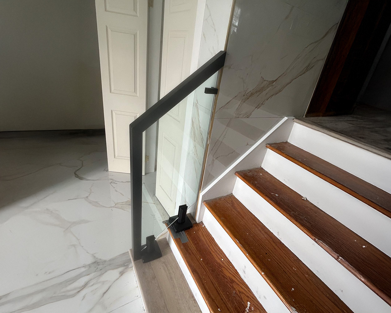 A modern, minimalist glass railing system designed to keep spaces bright, open, and safe. The frameless tempered glass panels provide clean sightlines and a premium architectural look, while the metal structure and hardware deliver strong, stable support for stairs, landings, loft edges, and balcony guardrails. Choose brushed stainless steel for a crisp, modern finish, or select powder coated components for a durable matte-black or custom-color style. Ideal for residential and light-commercial interiors, this system is engineered for easy alignment, secure fixing, and long-term performance with low maintenance.