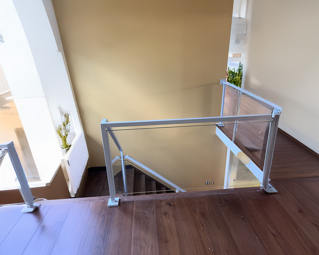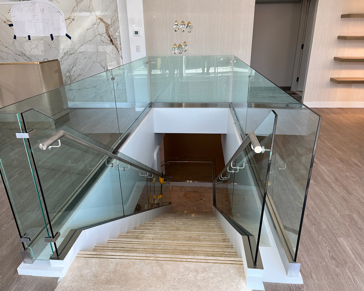 This modern glass railing system combines a corrosion-resistant stainless steel structure with crystal-clear safety glass to create an open, high-end look while maintaining reliable protection at stairs, mezzanines, landings, and balconies. The slim-profile glass panels maximize light and sightlines, and the rigid handrail/top rail improves stability and everyday comfort. Precision hardware (clamps/standoffs/spigots) keeps the installation clean and secure, making it a strong fit for luxury residential interiors, commercial corridors, and building stairwells. For best results, use tempered laminated glass where higher safety performance is required, and verify final sizing/engineering with local code requirements before fabrication.