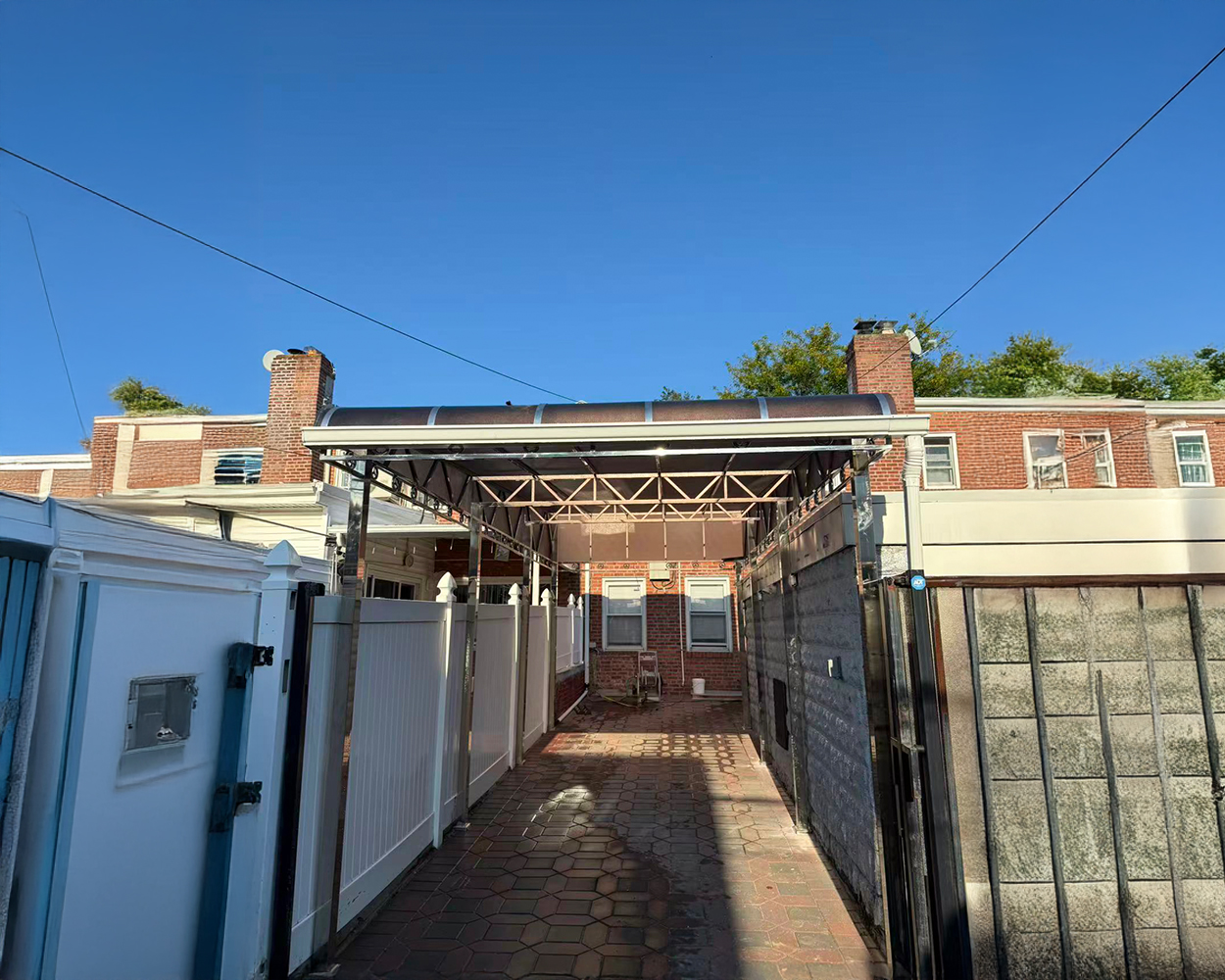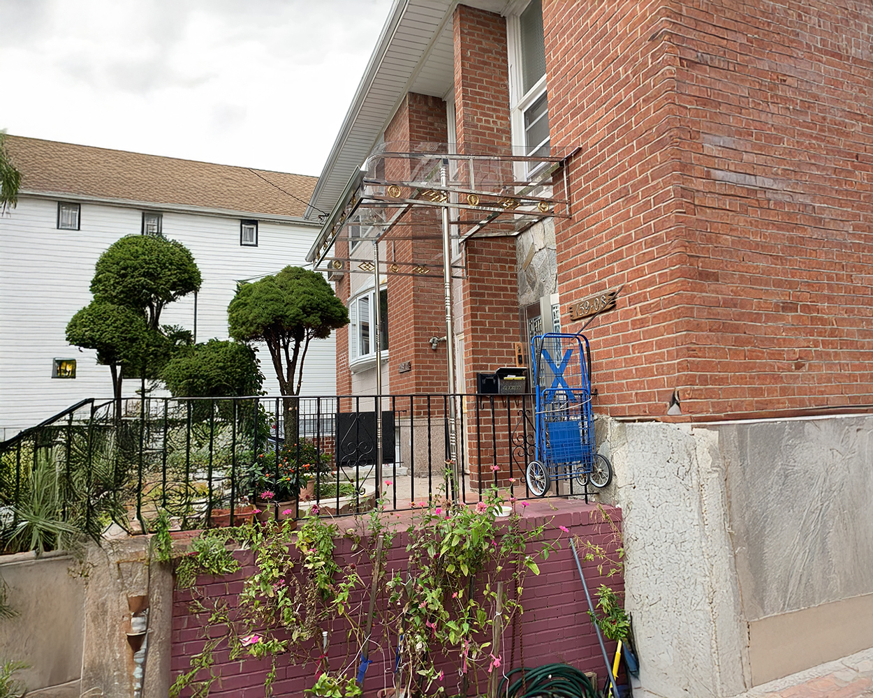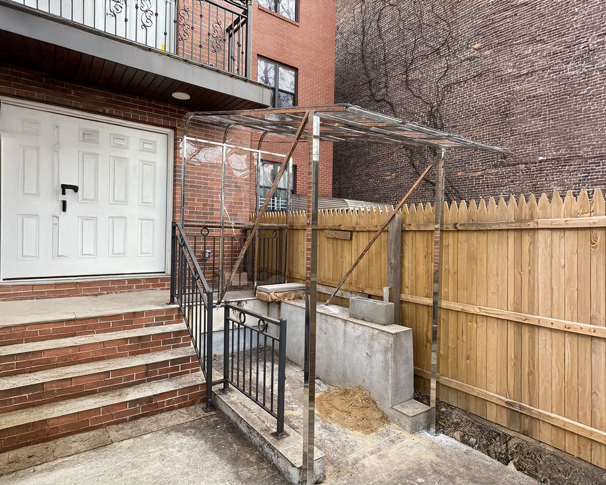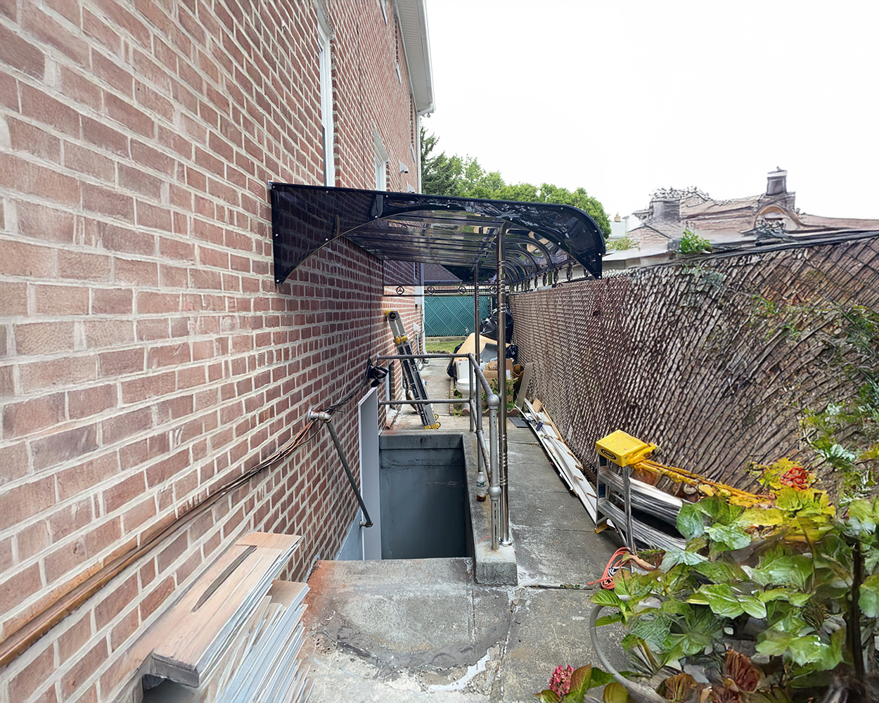 To address rain and sun exposure at key walkways, we installed stainless steel entry canopies sized to each elevation, with clean support framing and properly aligned mounting points to suit uneven masonry lines. Where the design required darker contrast elements (such as canopy panels/trim), we used powder coated finishes to match the surrounding façade and improve overall visual balance. After installation, all doors, locks, closers, and grille panels were tested for smooth operation, alignment, and secure closing, then cleaned and handed over as a cohesive stainless steel system built for durable performance in New York’s urban outdoor conditions.