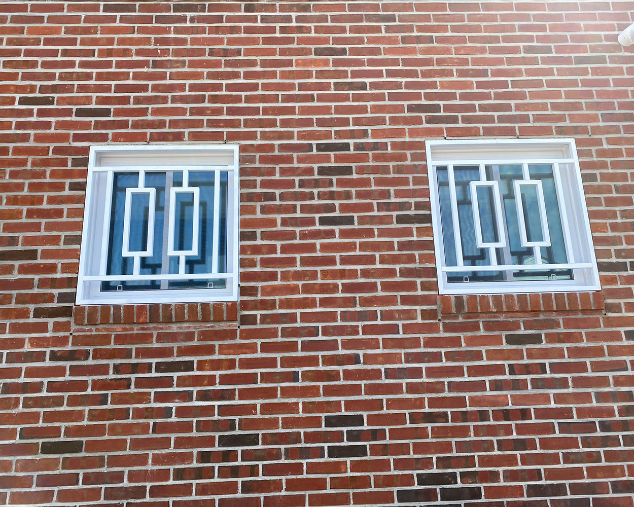 We supplied custom-fit security guards with a minimalist rectangular pattern and a smooth powder-coated finish for long-term outdoor durability. Each unit was measured to match the window opening, anchored securely to the masonry/siding, and installed with consistent spacing for a neat, uniform look. The result improves safety and peace of mind, preserves visibility from inside, and gives the property a sharper, more finished exterior appearance.