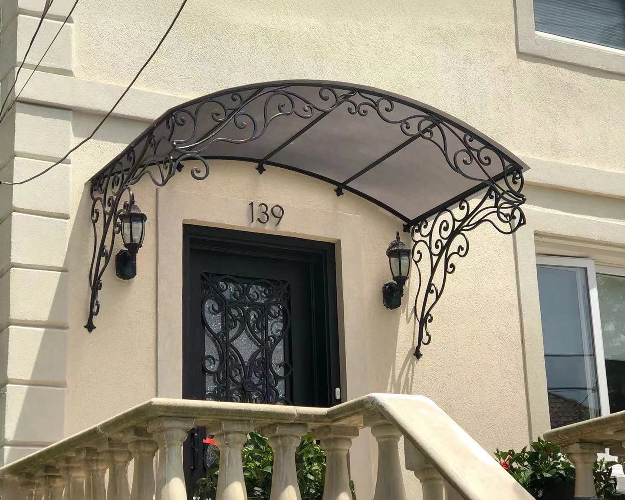 Ornamental Wrought Iron Door Canopy with Tinted Clear Panel