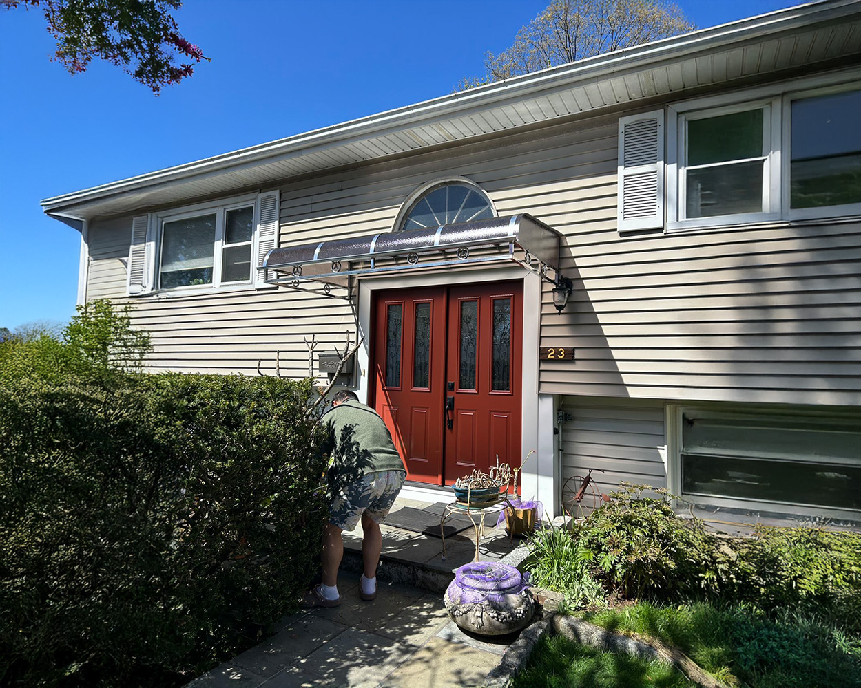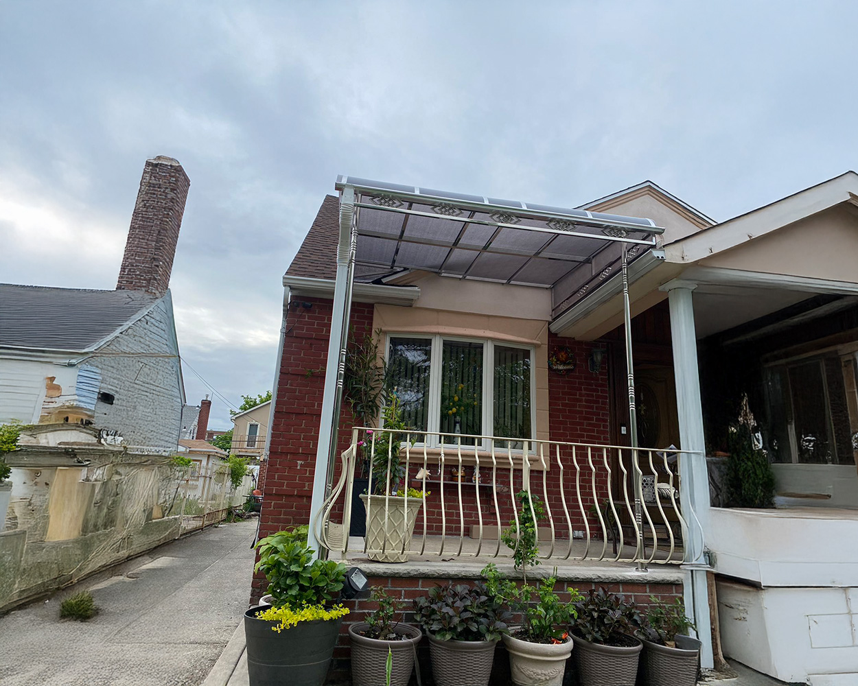 This installation created a continuous covered zone along the rear/side entry—keeping the walkway and back-door area dry while adding usable outdoor space for daily access, storage, and light-duty patio use. The client wanted maximum coverage without blocking daylight or making the exterior feel enclosed.