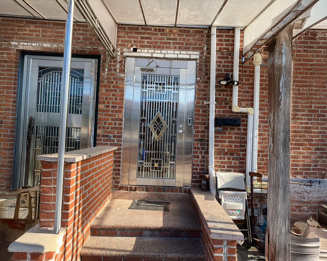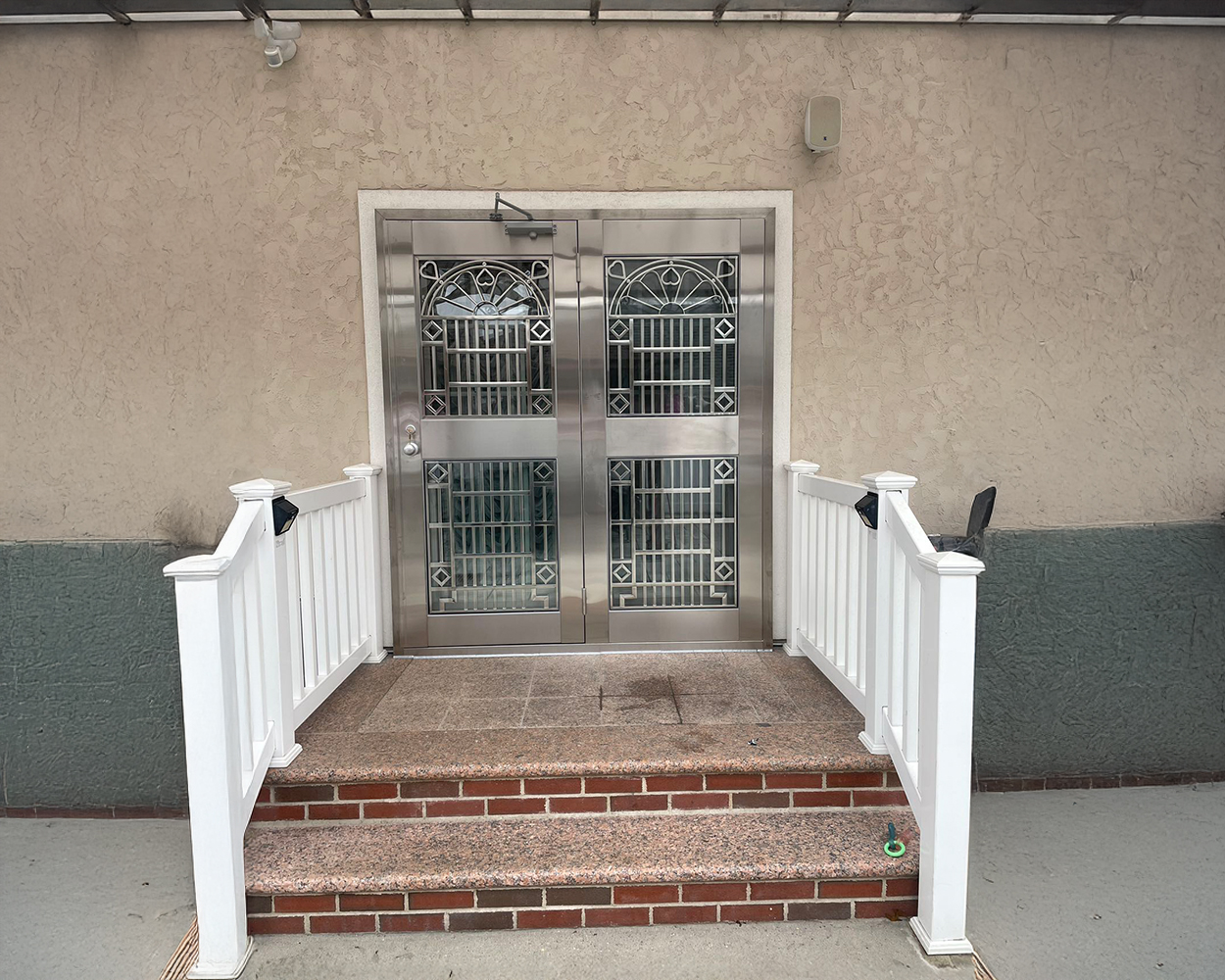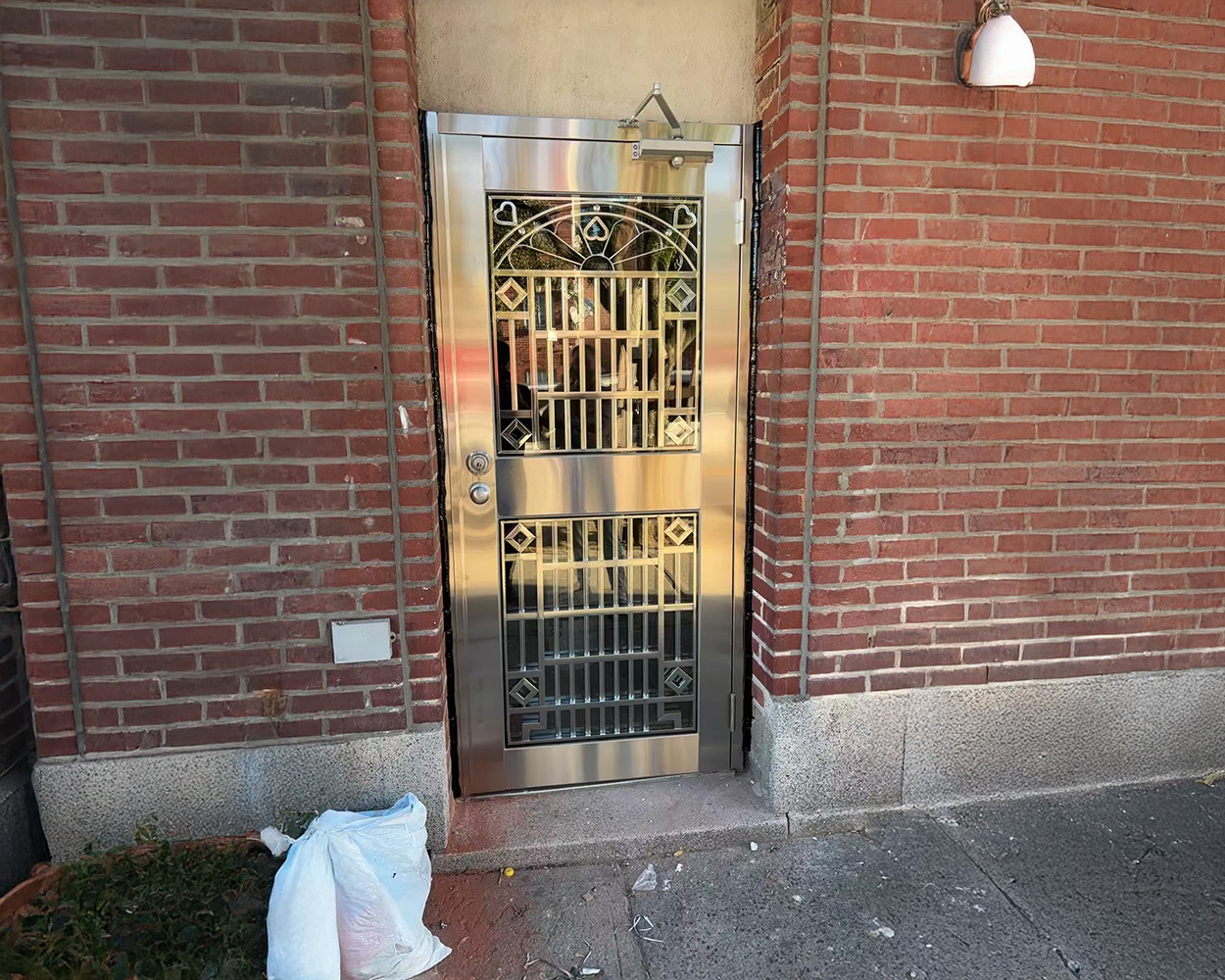 This Queens project focused on upgrading multiple entry points and vulnerable windows with a consistent stainless steel solution that improves security without making the home feel closed off. After an on-site visit, we checked the existing masonry openings, sill heights, and door swing clearances, then confirmed final measurements for fabrication. The scope included several custom stainless steel security doors (both single-leaf and double-entry sets) with integrated grille panels, arched top patterns, and clear-glass sections to keep visibility and daylight. We also coordinated door closers, hinges, and lockset positions to ensure smooth daily operation and reliable alignment in high-traffic entrances.