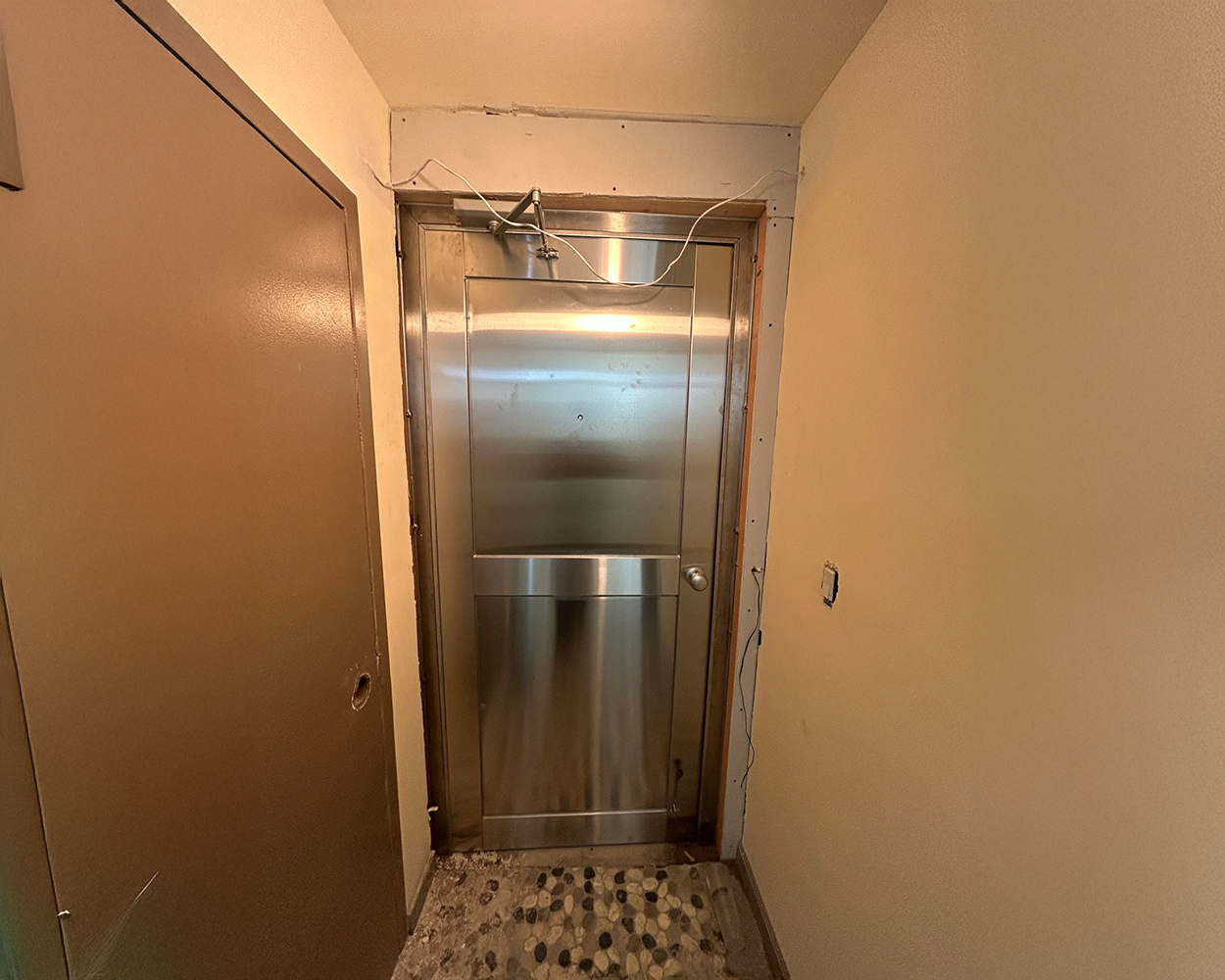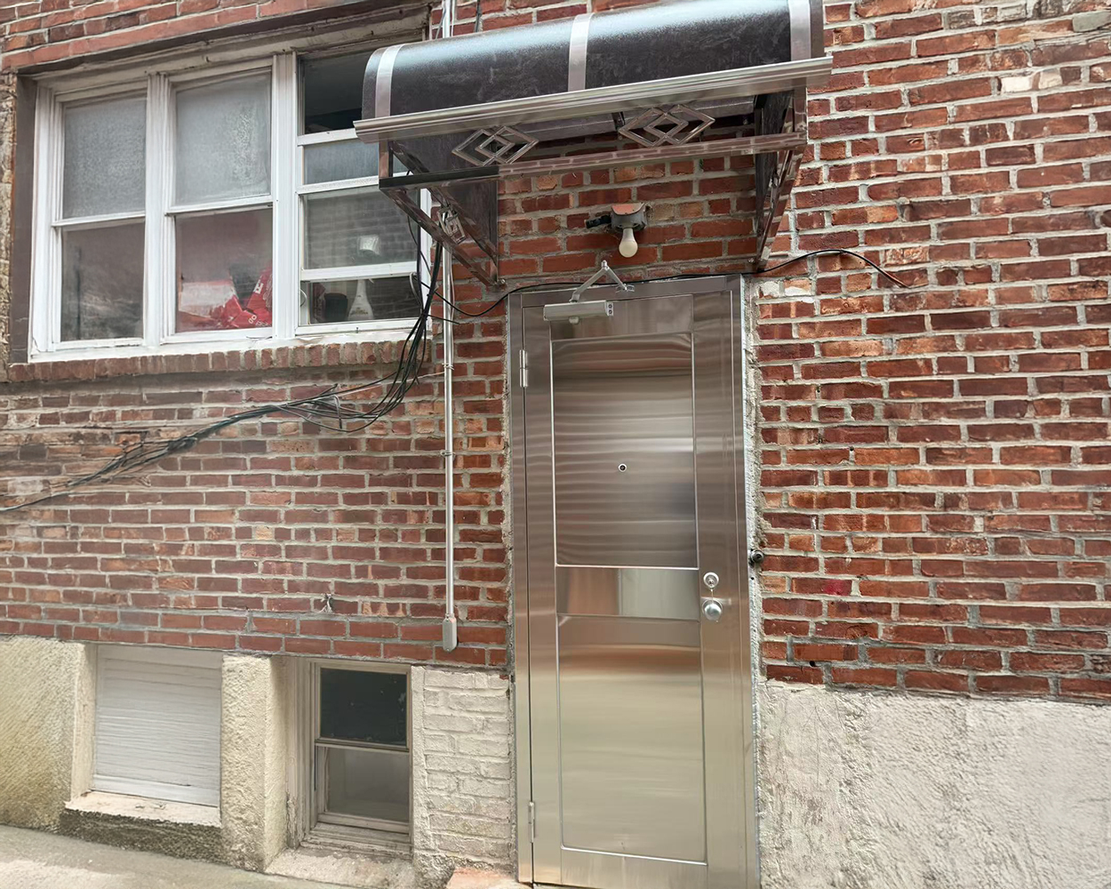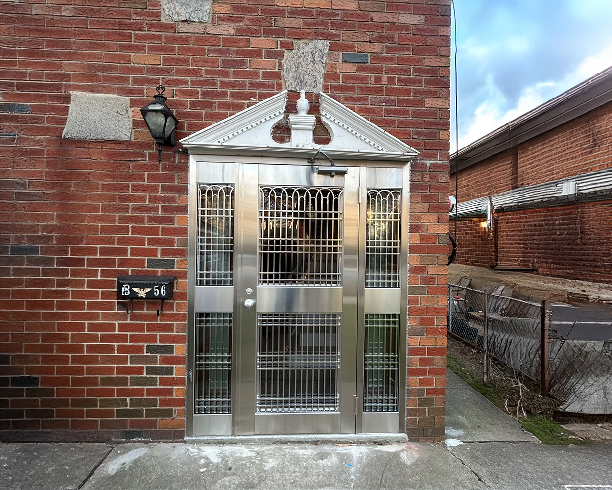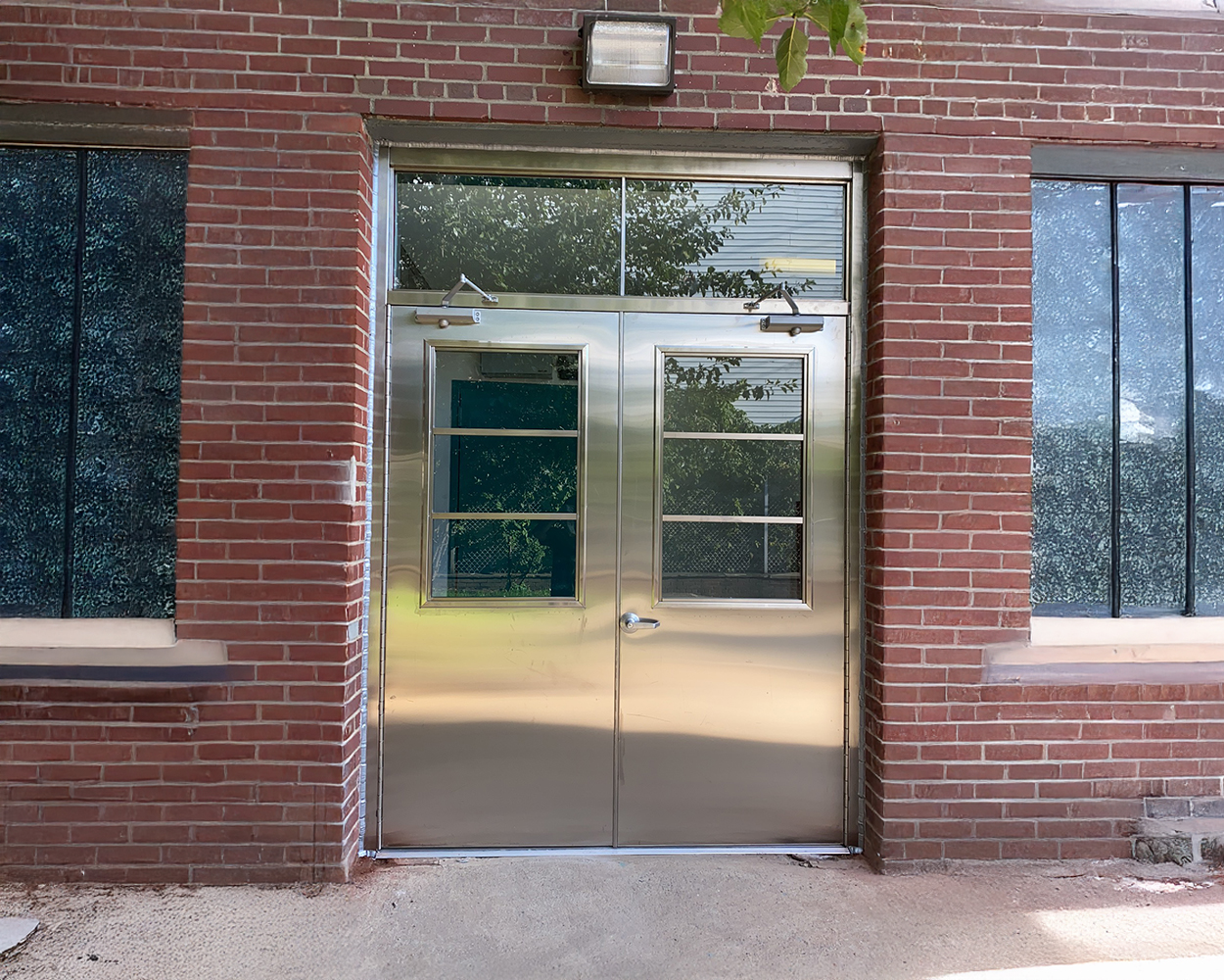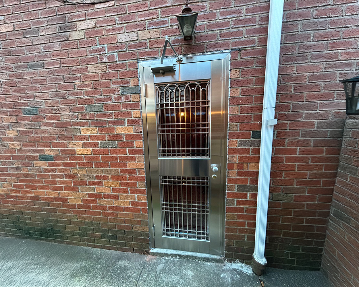 In addition to the doors, matching stainless steel window guards were produced to fit the brick façade precisely, with reinforced frames and evenly spaced vertical bars for a clean, durable look. On installation day, frames were anchored and leveled, hardware was adjusted on site, and all doors were tested for latch engagement, swing clearance, and closing speed before final clean-up. The finished result delivers a cohesive, modern stainless aesthetic across the property while adding dependable protection for both entrances and window openings.