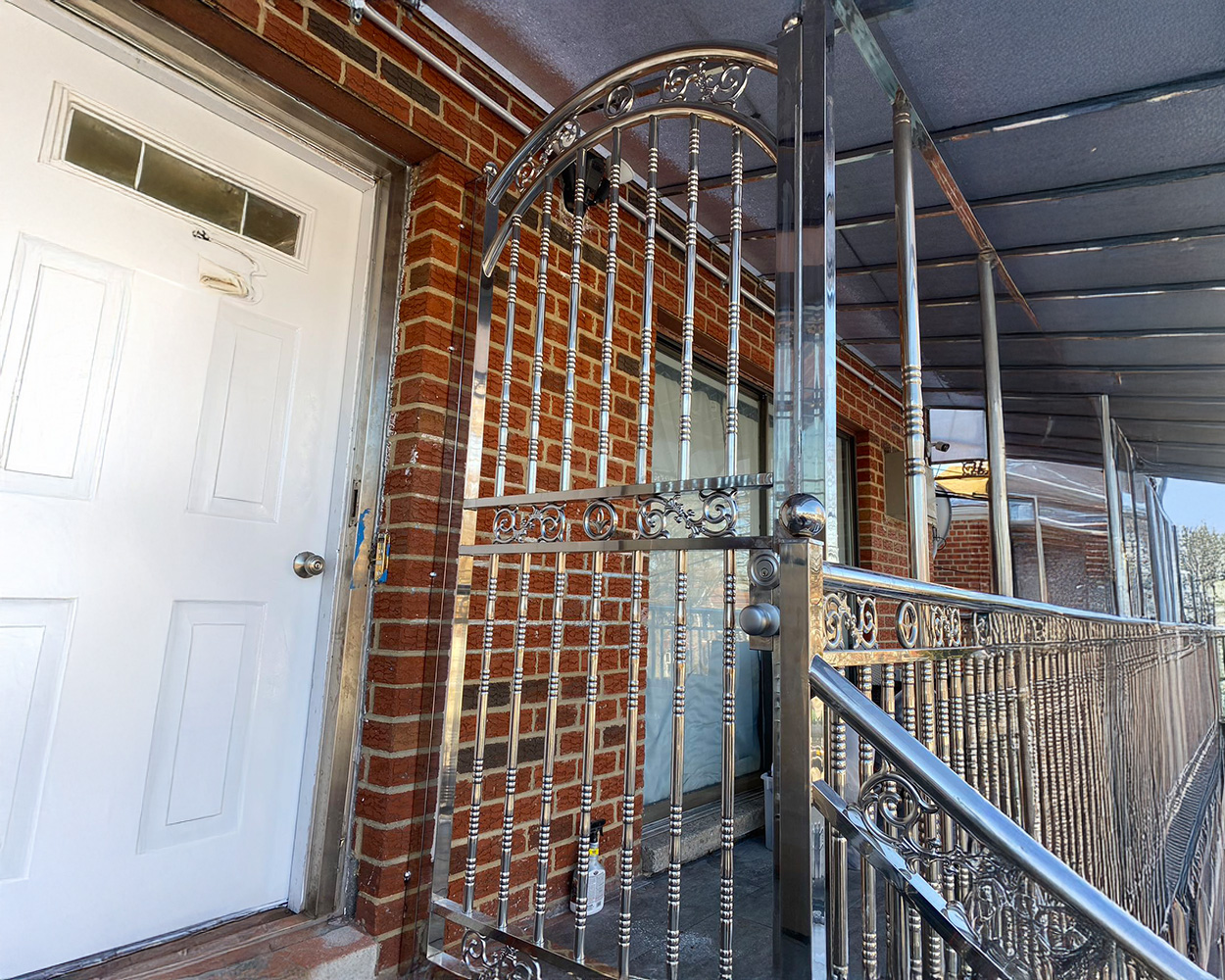 This project in Brooklyn involved a series of custom stainless steel installations covering both interior and exterior applications. After an initial site visit, we reviewed the existing openings, wall conditions, and structural constraints to finalize measurements and design details. For the bathrooms, frameless tempered glass shower enclosures were fabricated to fit each space precisely, ensuring clean lines, proper drainage control, and smooth door operation. All hardware was manufactured in stainless steel, with selected components finished in powder coated matte black and powder coated brushed gold to align with the overall interior style.