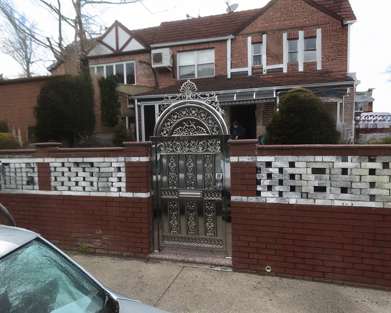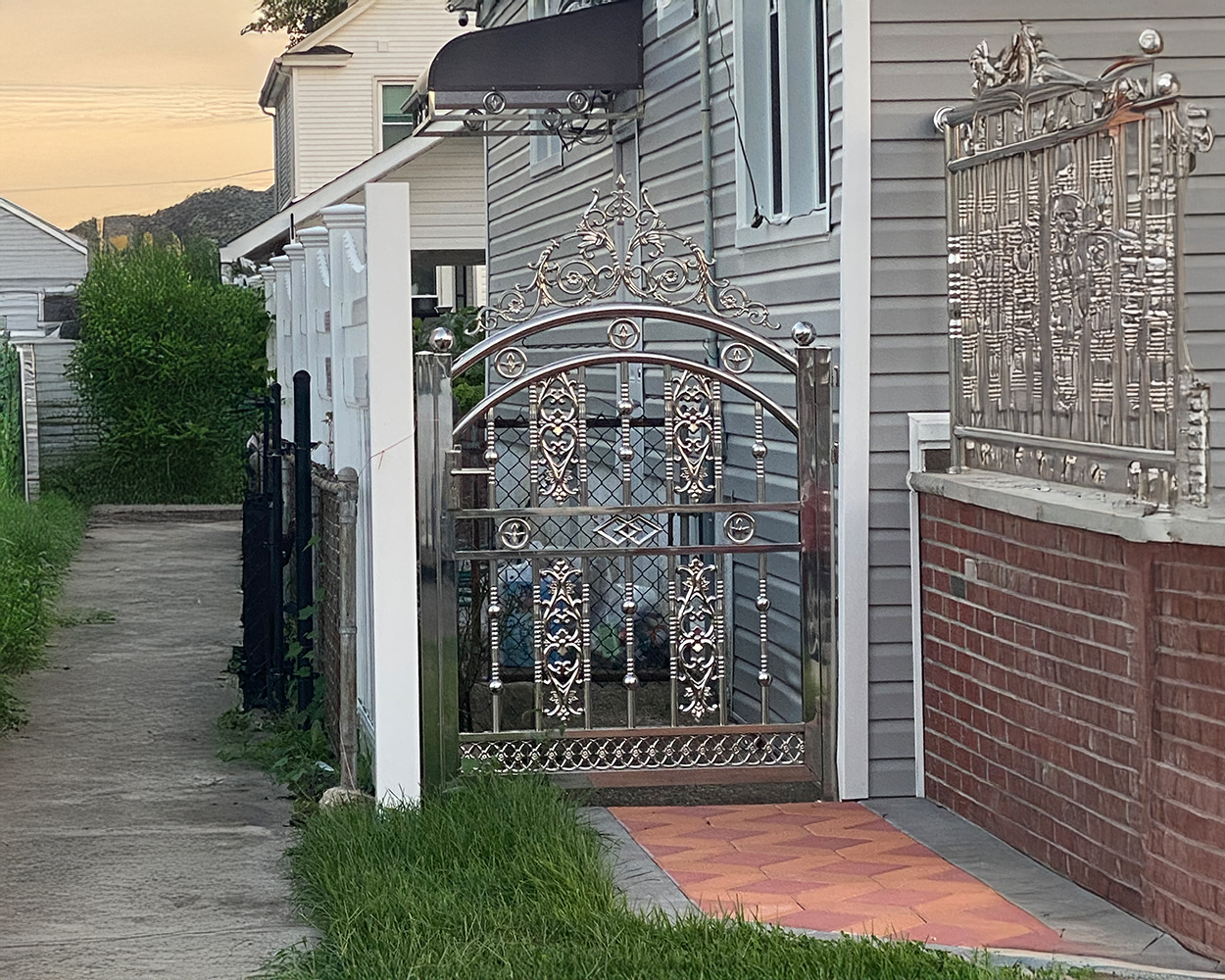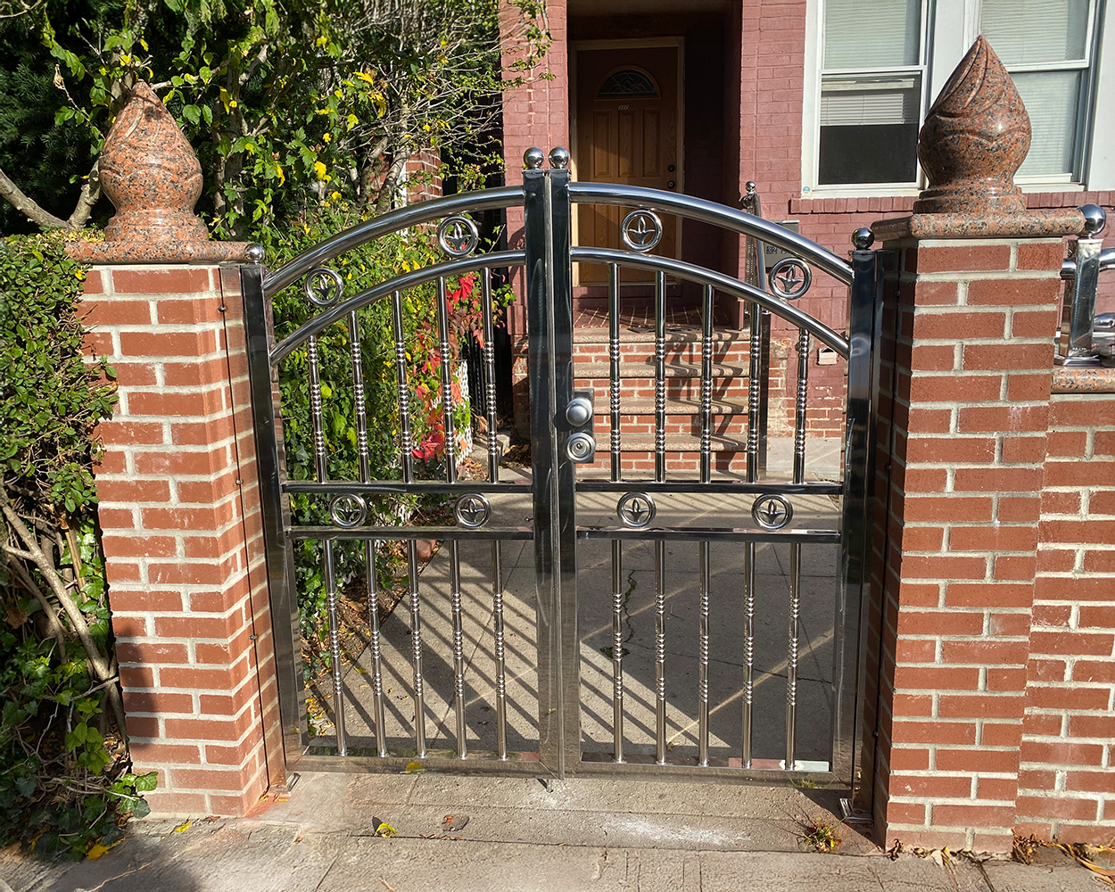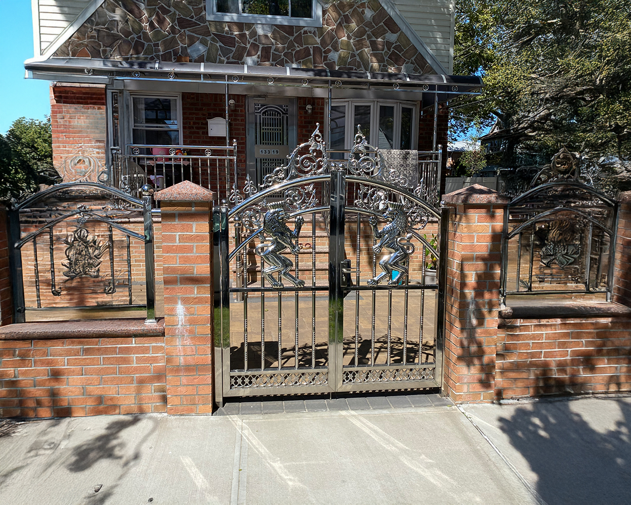 This NYC-area residential project focused on upgrading the front and side entry with a coordinated stainless steel gate-and-fence set that looks clean from the street while improving daily access control. After confirming the opening sizes, post conditions, and slope at the sidewalk, we finalized a design that matched the existing brick/stone piers and kept the lines consistent across multiple sections. The system was fabricated in stainless steel with polished framing and decorative details; for any non-original stainless finishes seen on-site (including darker textured panels and certain accent elements), we used powder coated components to ensure a uniform appearance and better surface durability. Installation included anchoring to masonry/piers, aligning hinges and latches for smooth swing, adjusting clearances for seasonal movement, and verifying lockset function and closing feel. Final checks covered panel spacing, fastener security, and a full cleanup so the entryway looked finished and balanced from every angle.