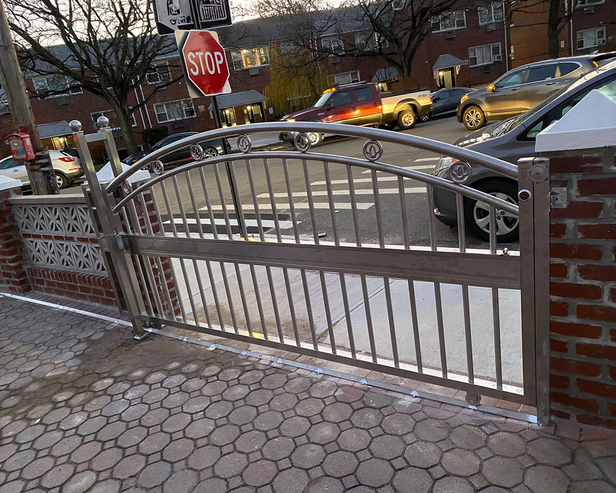 Custom Stainless Steel Driveway Gate & Matching Fence System (Arched Top, Decorative Infill)